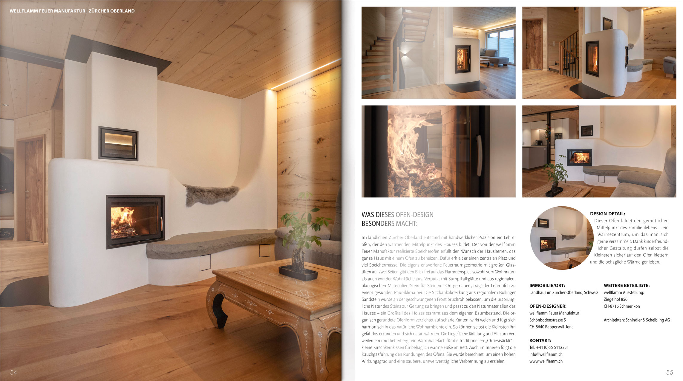 Ein hochwertiges Coffee-Table-Buch mit 99 der schönsten Ofen-Designs (Referenzobjekten). Jedes Projekt wird auf einer Doppelseite vorgestellt.